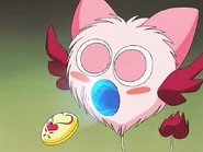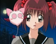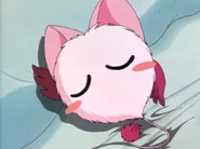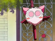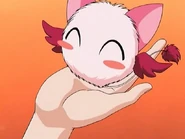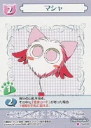 Masha has a round, furry, pink body. He is small enough for people to hold him in one hand. He has pink cat ears, red wings, red fluffy tail and large pink eyes. He always appears to be blushing, like Ucha. Masha looks the same as the Masha from Tokyo Black Cat Girl. He is very protective of Ichigo and tries to help in battles, but often fails to do so.