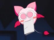In the Tokyo Mew Mew anime adaptation, Masha has a more extensive vocabulary, and tries, unsuccessfully, to assist the Mew Mews in some battles. Primarily communicating by repeating the sounds "pi" and "tweet", Masha does not appear to be designed to support high-level speech initially, though in Tokyo Mew Mew à la Mode he is once shown speaking in a complete sentence.